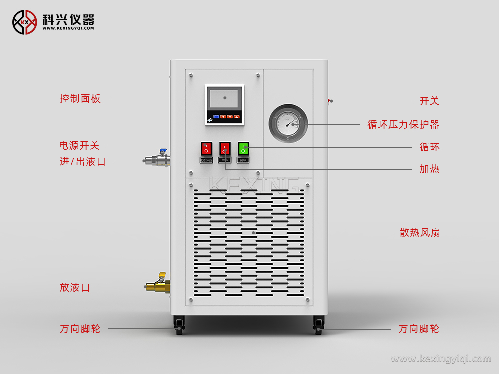 密閉型加熱循環器,是指導熱介質在封閉的循環系統中采用電加熱方式,通過循環泵輸出導熱流體加熱配套反應容器的一種新型加熱設備。被廣泛應用于制藥、化工、石化行業中需要高溫條件的反應器組合裝置。
