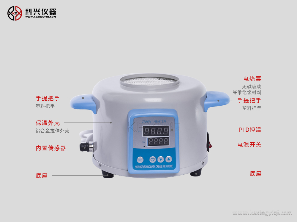 ZNHW型電熱套是用無堿玻璃纖維作絕緣材料,將Cr20Ni80合金絲簧裝置于其中,用硅酸鋁棉經(jīng)真空定型的半球形保溫體保溫,外殼一次性注塑成型,上蓋采用靜電噴塑工藝,由于采用球形加熱,可使容器受熱面積達到60%以上。控溫采用計算機芯片做主控單元,采用多重數(shù)字濾波電路,模糊PID控制算法,具有測量精度高,沖溫小,單鍵輕觸操作,雙屏顯示,內(nèi)、外熱電偶測溫,可控硅控制輸出,160-240V寬電壓電源,并有斷偶保護功能,具有升溫快、溫度高、操作簡便、經(jīng)久耐用的特點,是做準確控溫加熱試驗的理想儀器。